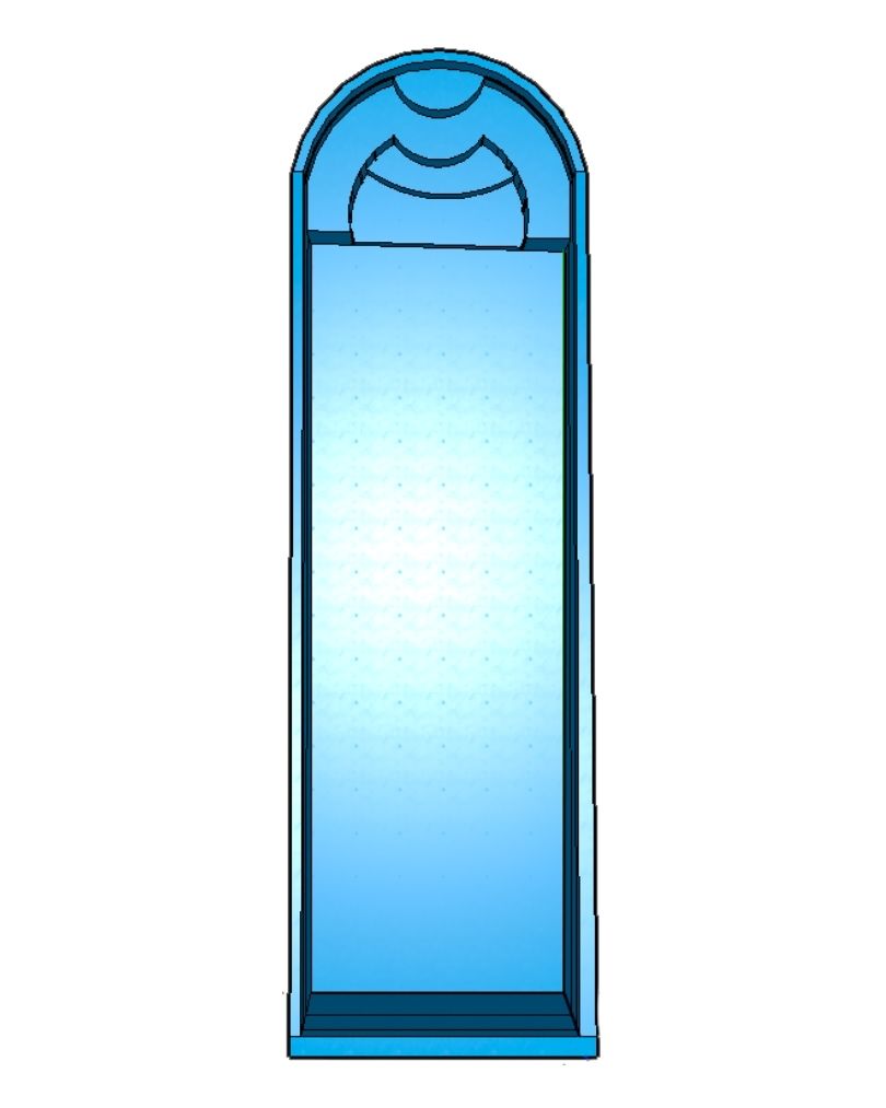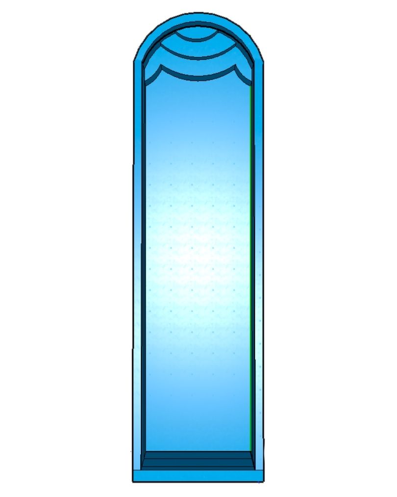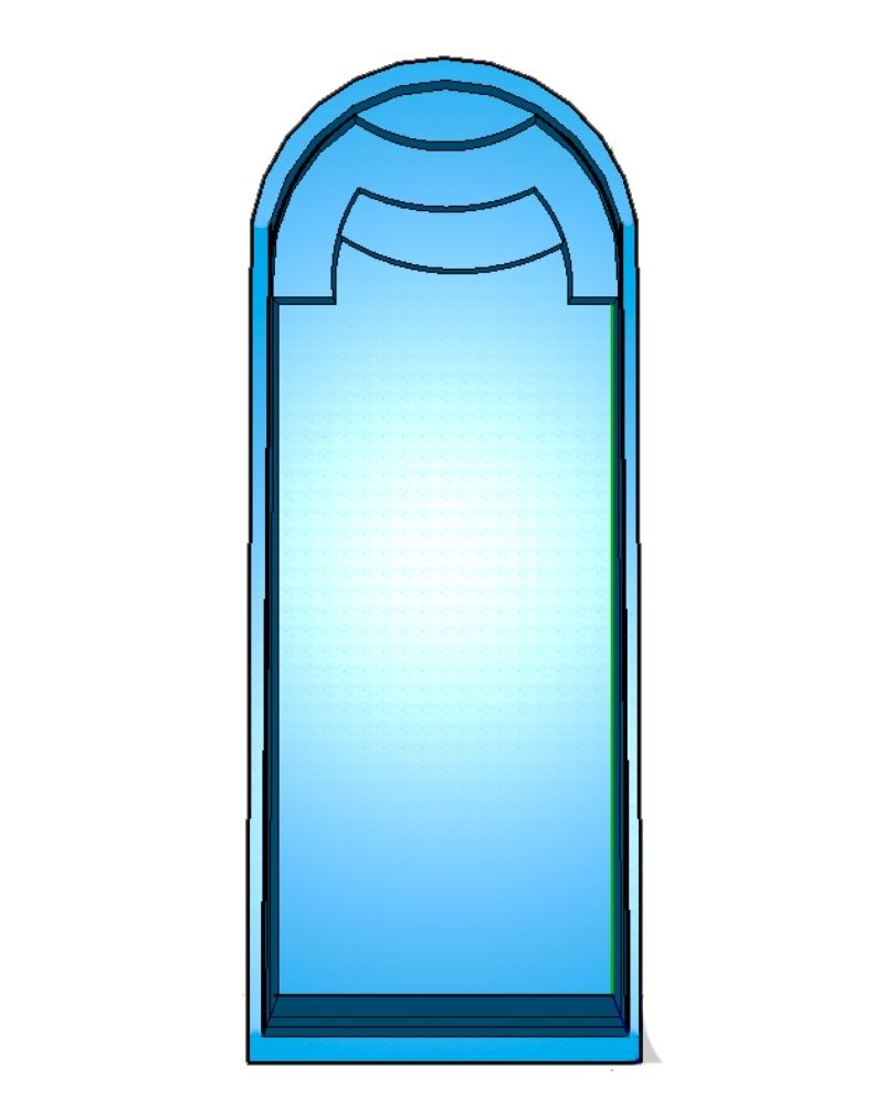 El acceso está realzado por tres escaleras semicirculares integradas, que se funden con el diseño curvo para crear una entrada cómoda, segura y visualmente impactante. Esta combinación de estética y funcionalidad la hace destacar como una de las piscinas más elegantes de su categoría.