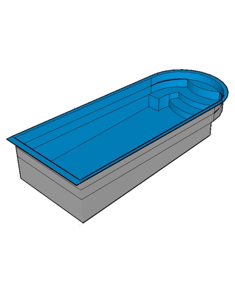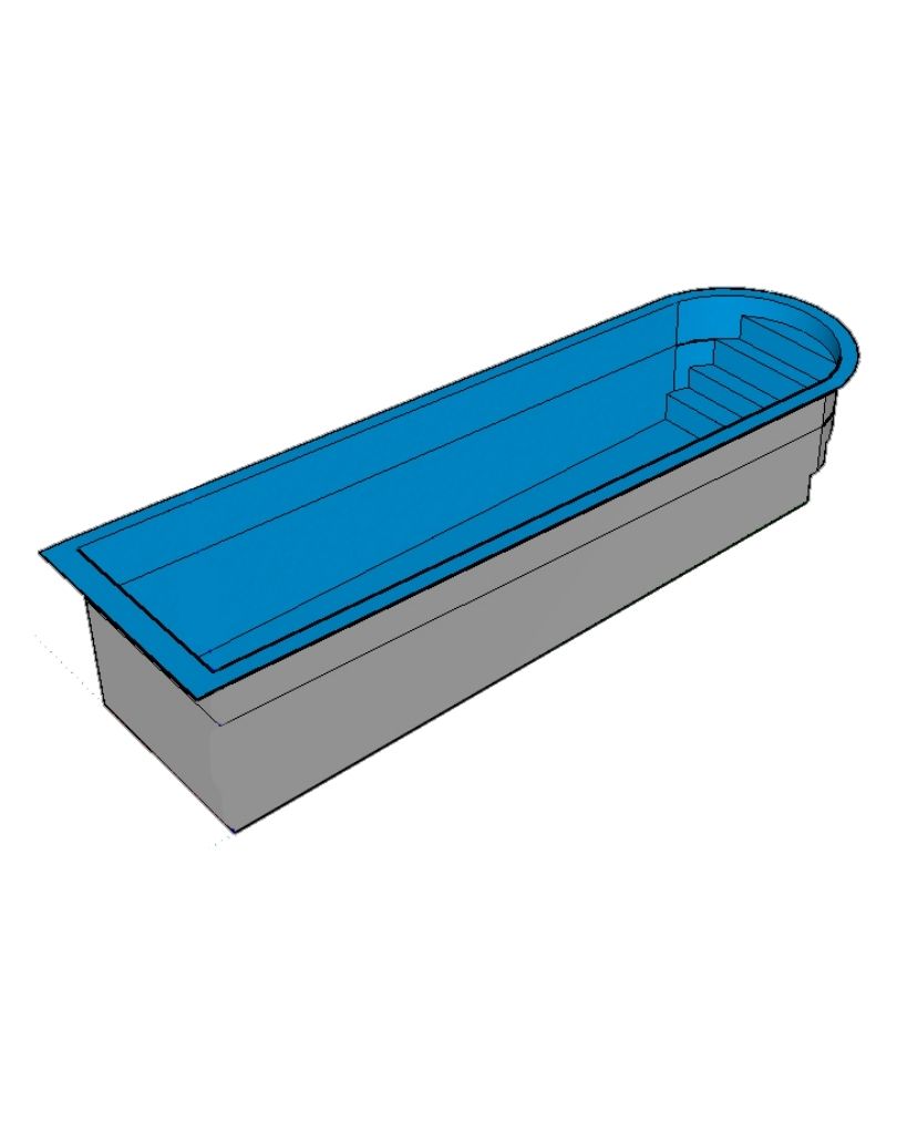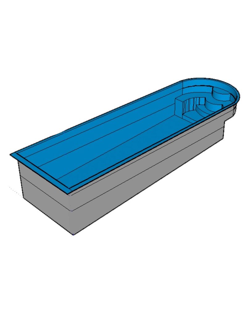 Un diseño que nunca pasa de moda. La Piscina Tipo Romana combina la estética atemporal de sus curvas con la practicidad de una piscina moderna. Sus 4 escaleras integradas en el extremo curvo permiten un acceso cómodo y seguro, creando además un espacio ideal para sentarse y relajarse dentro del agua.