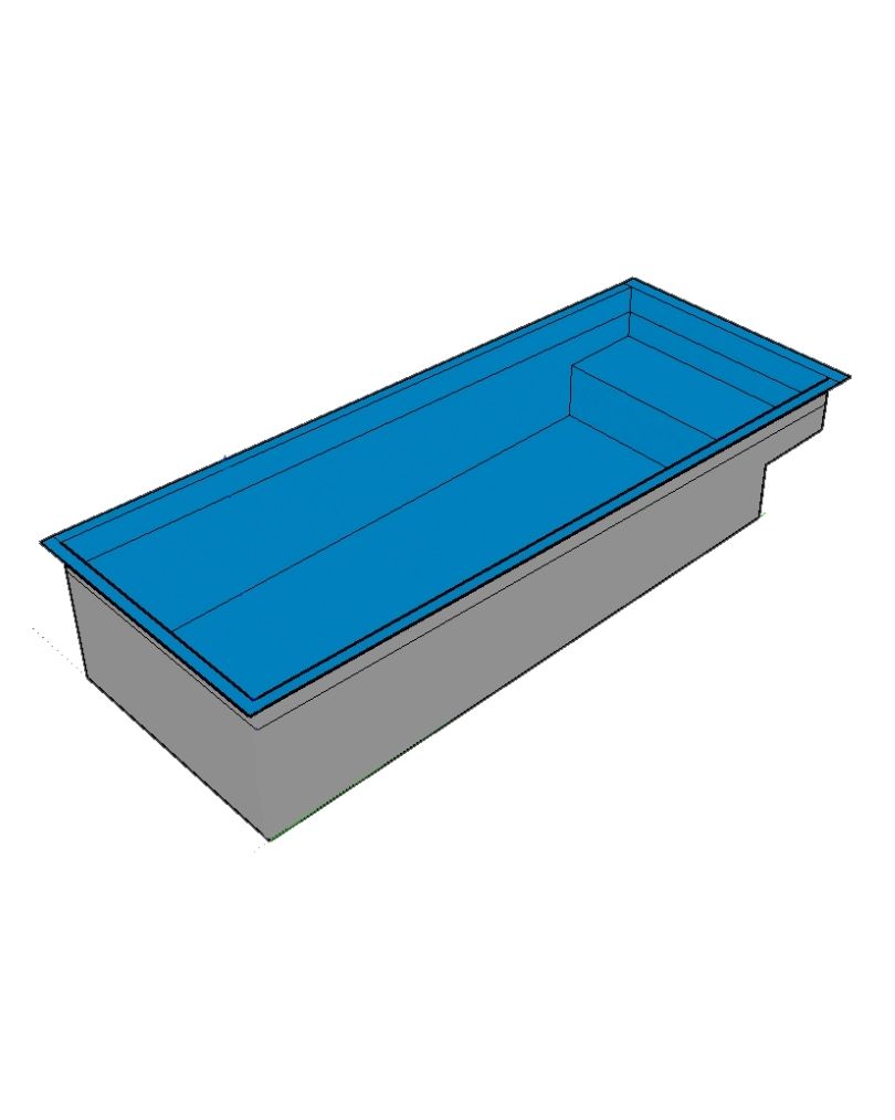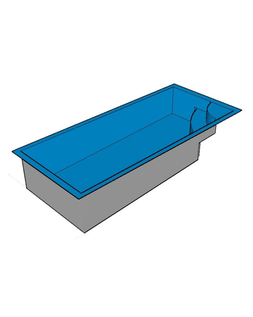 Un modelo rectangular elegante y muy bien aprovechado en su diseño interior. Esta piscina de 6.00 x 3.00 metros no solo ofrece amplitud y comodidad, sino que incorpora un detalle único: una banca central en la entrada, pensada para sentarse y relajarse mientras los retornos proyectan chorros de agua directamente en la espalda, brindando una experiencia de hidromasaje natural dentro de la piscina.