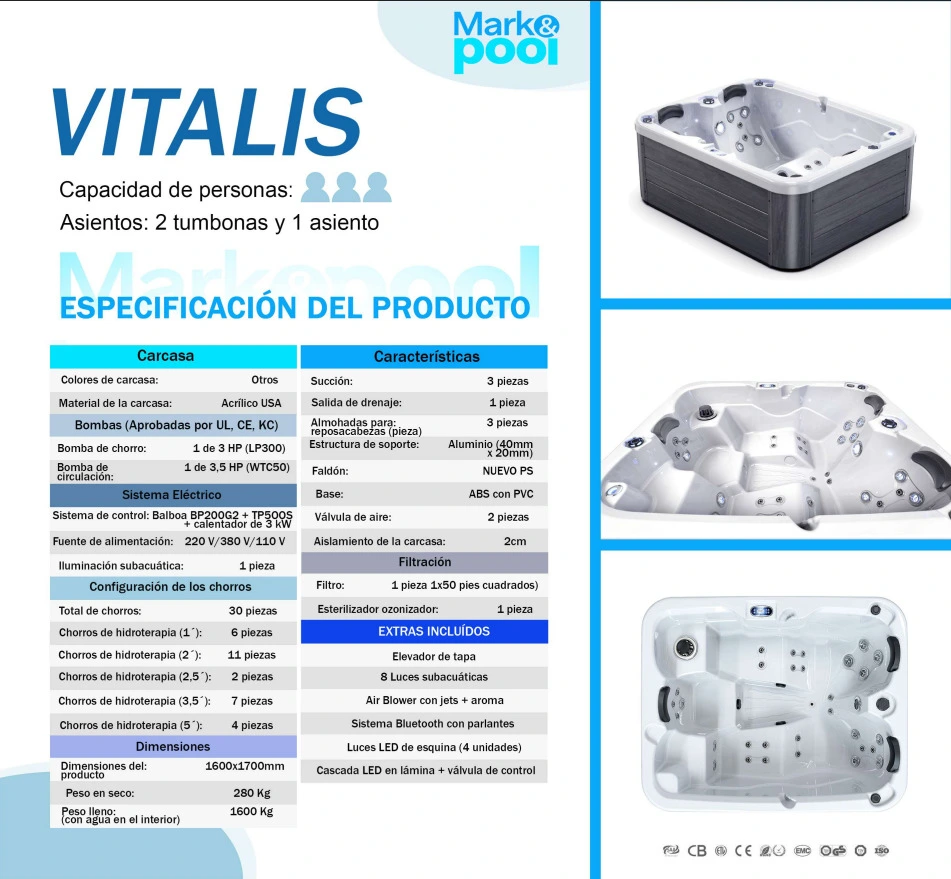 Spa VITALIS — 3 Personas (220 V • 32 A)