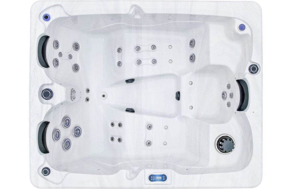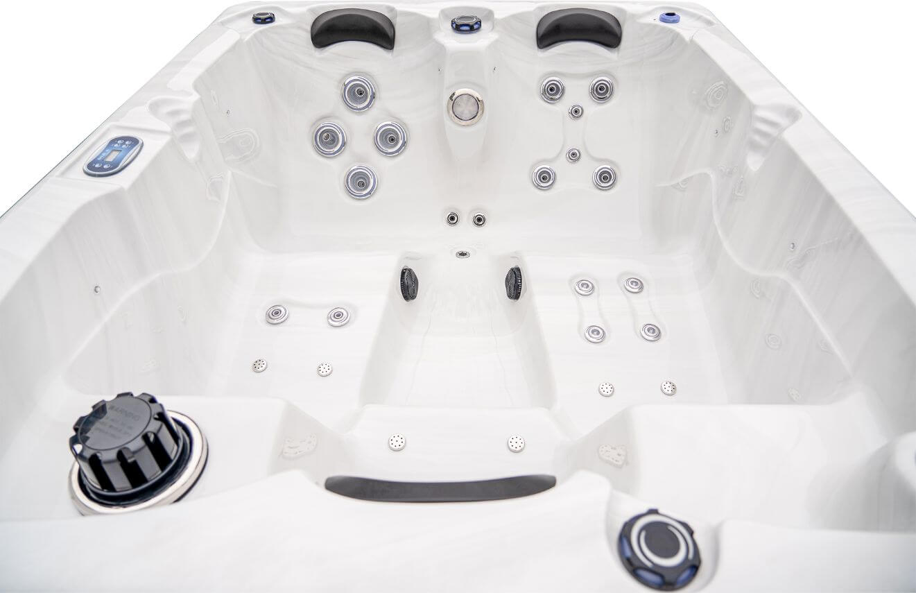 Disfruta de 30 jets de hidromasaje estratégicamente distribuidos, controlados por un sistema Balboa que te permite regular temperatura, jets e iluminación con precisión. El sistema de ozonización y el filtro de 50 ft² mantienen el agua limpia y cristalina, mientras el aislamiento de 2 cm mejora la eficiencia energética.