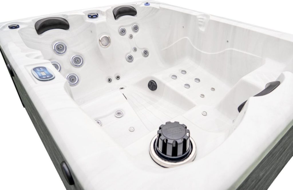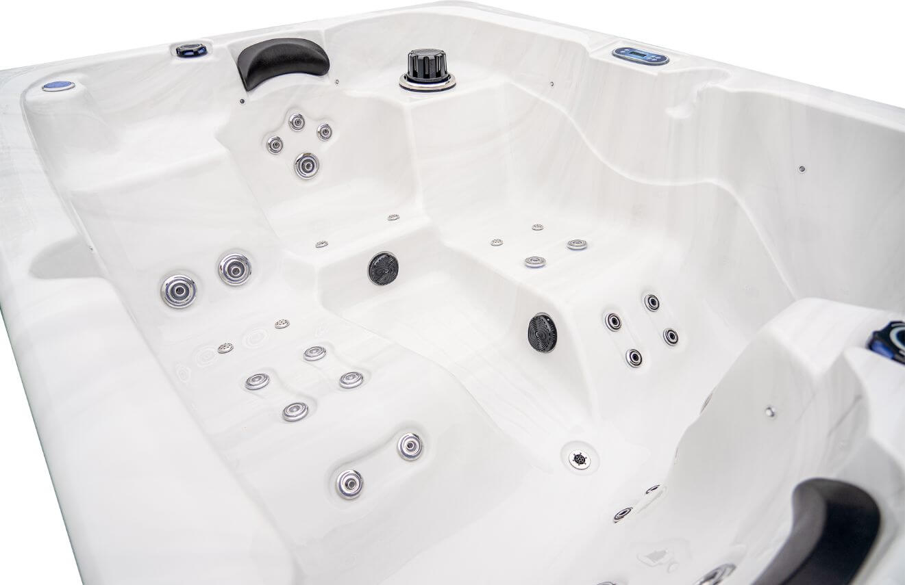 El ozonizador y el filtro de 50 ft² mantienen el agua en óptimas condiciones. La construcción con acrílico USA, estructura de soporte en aluminio y aislamiento de 2 cm entregan durabilidad y mejor rendimiento energético.