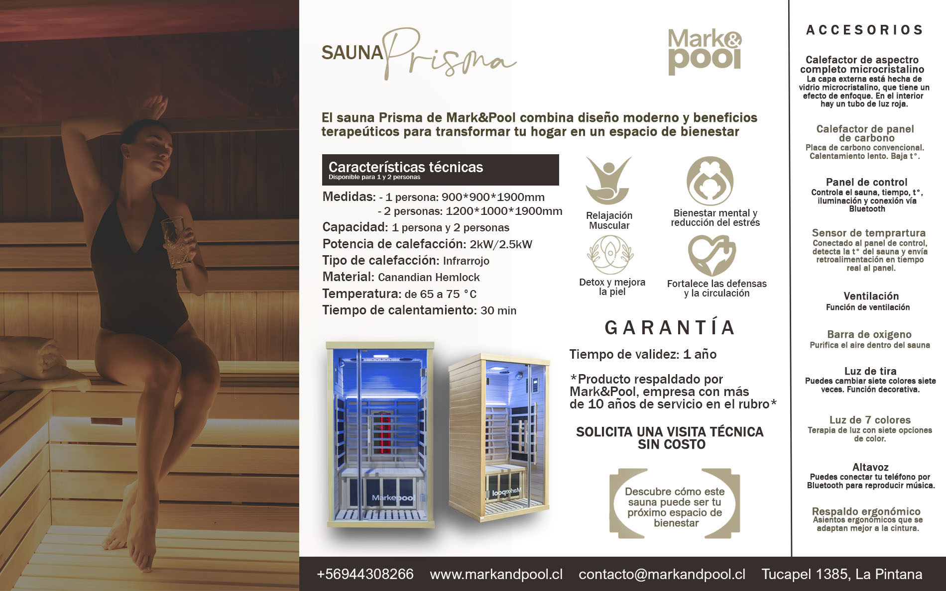 El Sauna Infrarrojo Prisma para 1 o 2 personas combina diseño, tecnología y confort para ofrecer sesiones